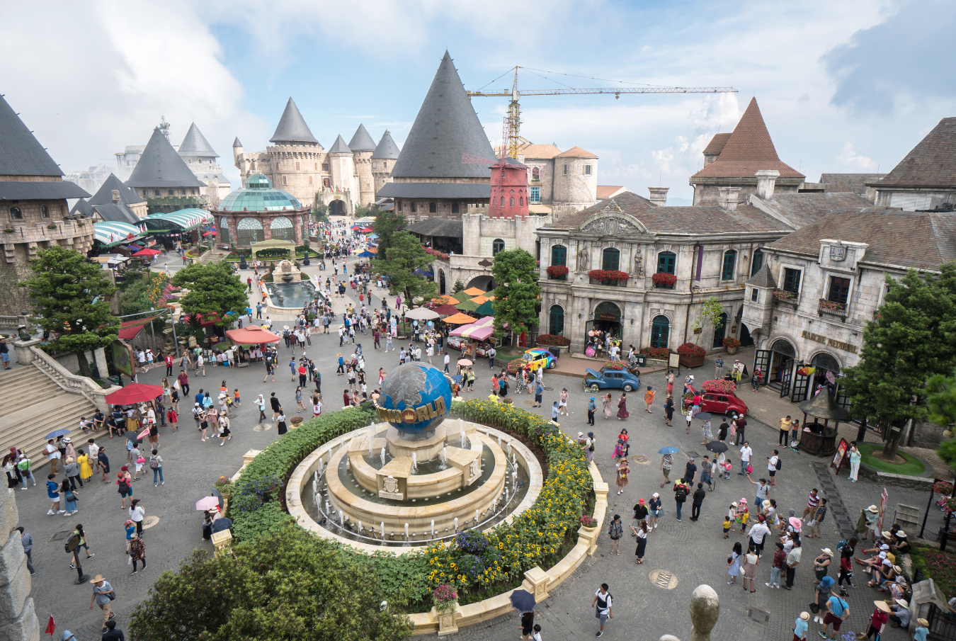 Ride a second cableway up to the French Village, a lively mountaintop square inspired by classical European towns. Here you can enjoy street performances, admire the grand bell tower and Gothic-style architecture, and explore charming alleyways and scenic squares.