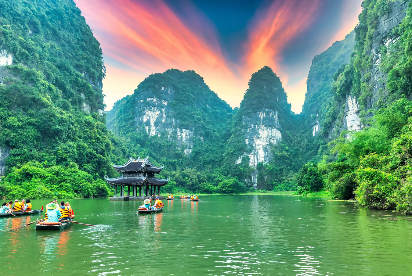 This morning you’ll set off for Ninh Binh, a destination famed for its stunning scenery and historical depth. You will first uncover Hoa Lu Ancient Capital, a place that still preserves sacred temples and cultural relics from the 10th century, narrating the glorious reigns of King Dinh and King Le. After that, you’ll have time for lunch (your own arrangement)