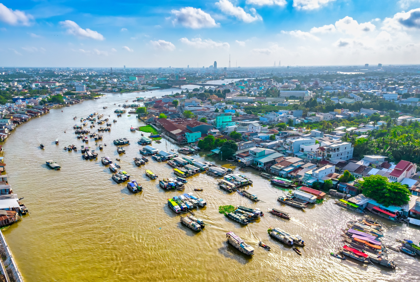 Upon arrival, transfer to a local boat for a visit to Cai Rang Floating Market – one of the delta’s busiest wholesale markets. See traders exchanging fresh produce directly from boat to boat, then stop by a traditional bamboo-weaving workshop before continuing to Ninh Kieu Wharf.