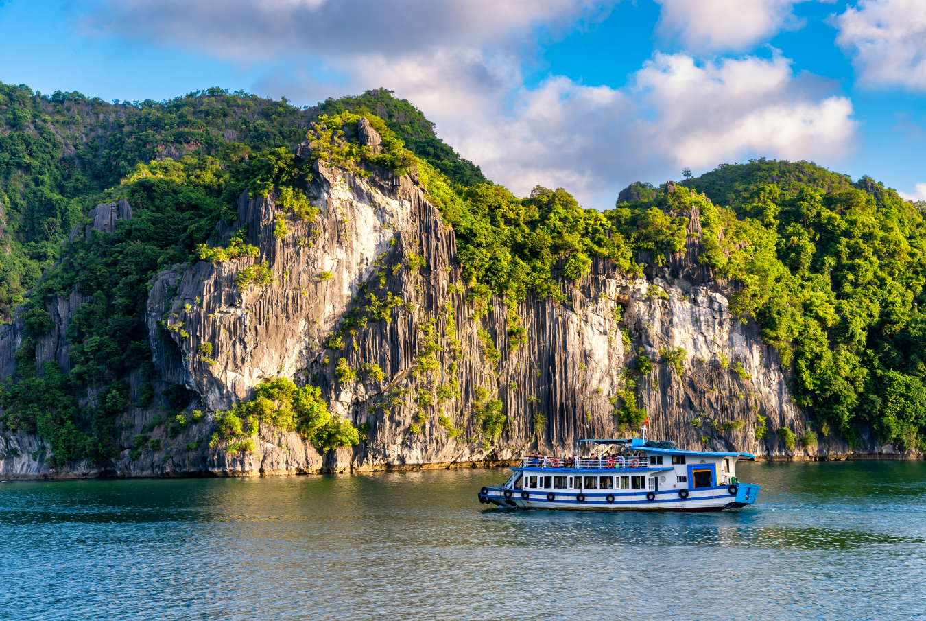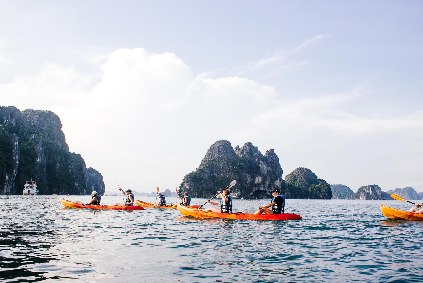 14:30| Cruise toward either Ba Trai Dao or Tra Bau (weather seasons apply). Spend the afternoon kayaking among limestone formations or swimming in clear waters fringed by jungle-covered cliffs.
